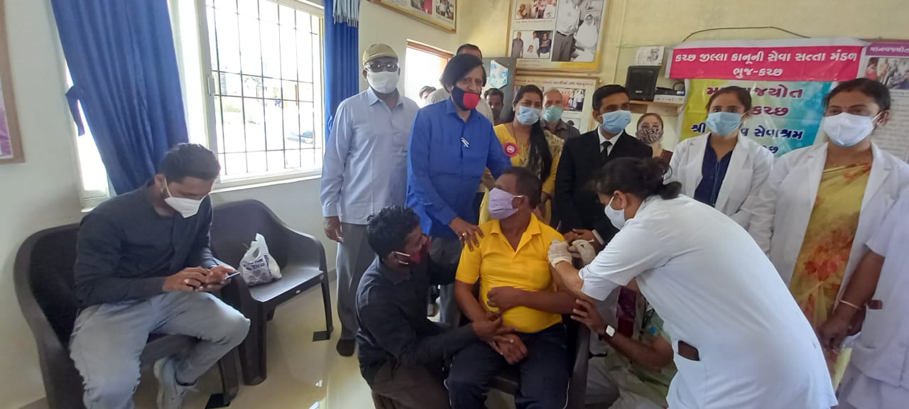જિલ્લા કાનૂની સેવા સત્તા મંડળ ભુજનાં માર્ગદર્શન હેઠળ, માનવજ્યોત સંસ્થા ભુજનાં સહકારથી, મિલે સૂર હમારા વુમન્સ કરાઓકે સિંગિગ સ્ટાર ભુજ દ્વારા માનવજ્યોત સંસ્થા ભુજ સંચાલિત શ્રી રામદેવ સેવાશ્રમપાલારા – કચ્છનાં ૩૦ માનસિક દિવ્યાંગોને કોરોનાં સામે રક્ષણ મેળવવા રસીકરણ કરવામાં આવ્યું હતું. જેમાં કચ્છ જિલ્લા પંચાયત આરોગ્ય શાખા ભુજ અને રાષ્ટ્રીય બાલ સ્વાસ્થ્ય કાર્યક્રમ માધાપરની ટીમે […]